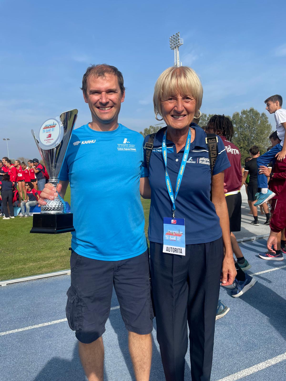 | 09 Ottobre 2023 U16. Piemonte mai così in alto! Storico terzo posto nella classifica combinata del Trofeo delle Regioni in pista. Otto le medaglie individuali cinque ori (Alves Nunes, Canape, Succo, Caggia, Pastore), due argenti (Bagnati, 4x100 femminile), un bronzo (Vallet). | |