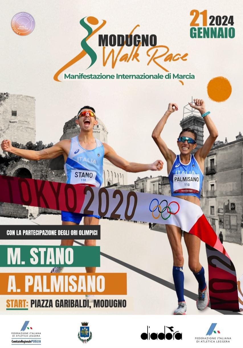 | 15 Gennaio 2024 Modugno: la staffetta con Palmisano e Stano Domenica in Puglia i due campioni olimpici della marcia gareggiano insieme per la prima volta nella nuova specialità introdotta ai Giochi di Parigi. Le coppie: Fortunato-Trapletti, Cosi-Mihai, Orsoni-Curiazzi, Agrusti-Vitiello | |