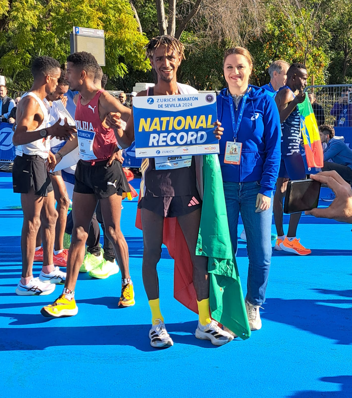 | 18 Febbraio 2024 Yeman Crippa 2h06:06 record a Siviglia L’azzurro migliora di oltre un minuto il primato italiano dei 42,195 km nella seconda maratona in carriera, Eyob Faniel 2h07:09 secondo di sempre, Daniele Meucci scende a 2h07:49 | |