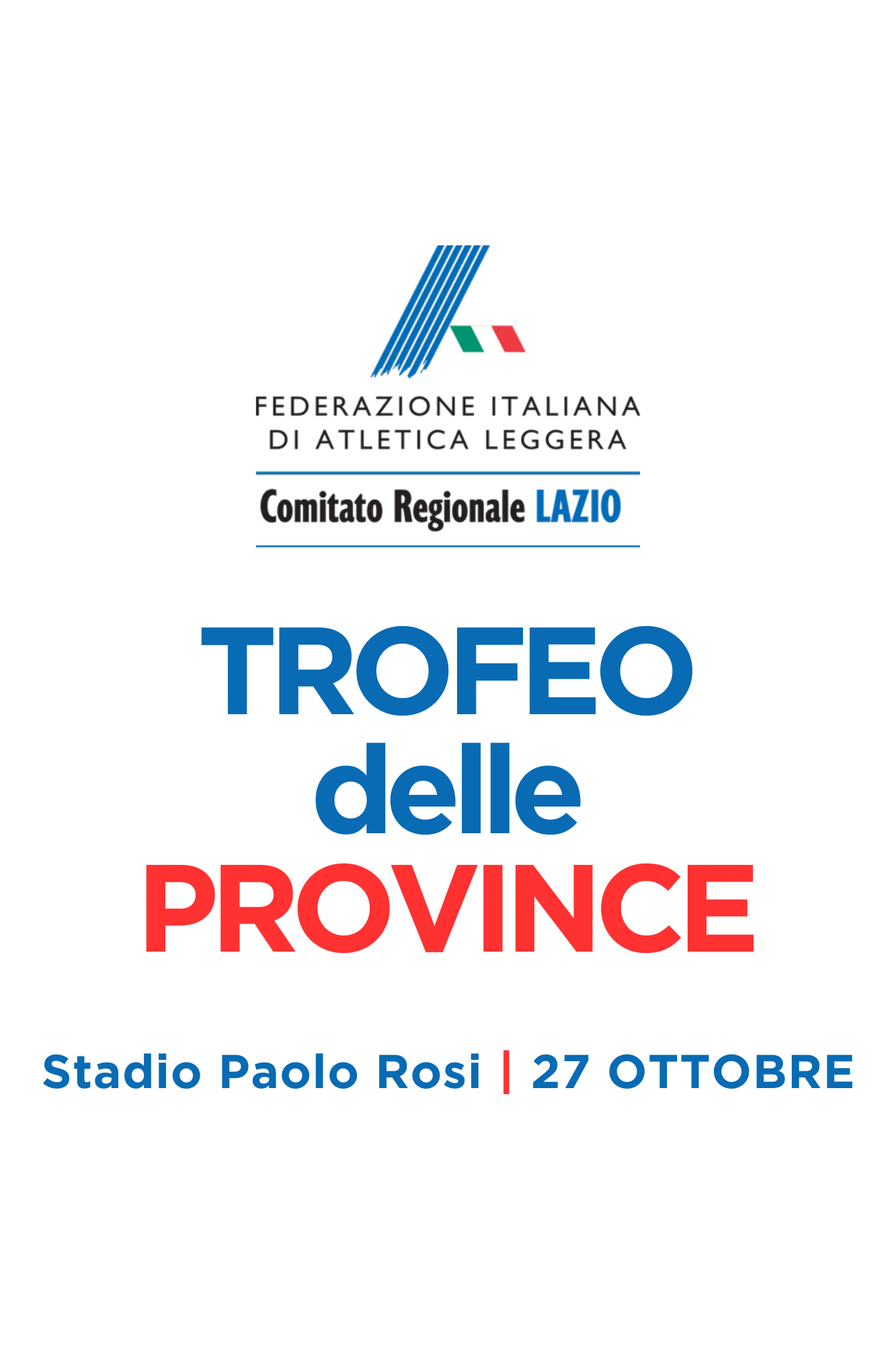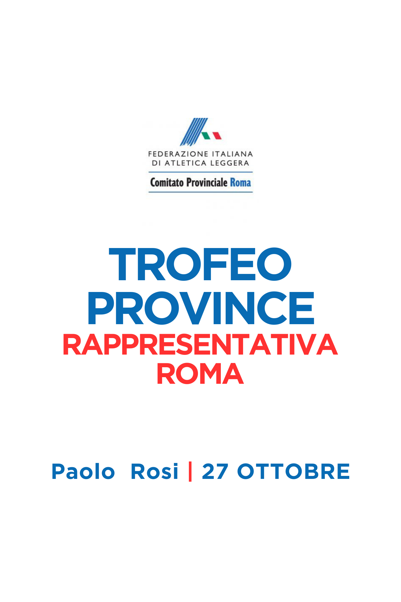 | 24 Ottobre 2024 C'è il Trofeo delle Province al Rosi Gare dalle 11 alle 15.30 domenica allo stadio Paolo Rosi di Roma: c'è il Trofeo delle Province, manifestazione di fine stagione rivolta alla categoria Cadetti e Cadette | |