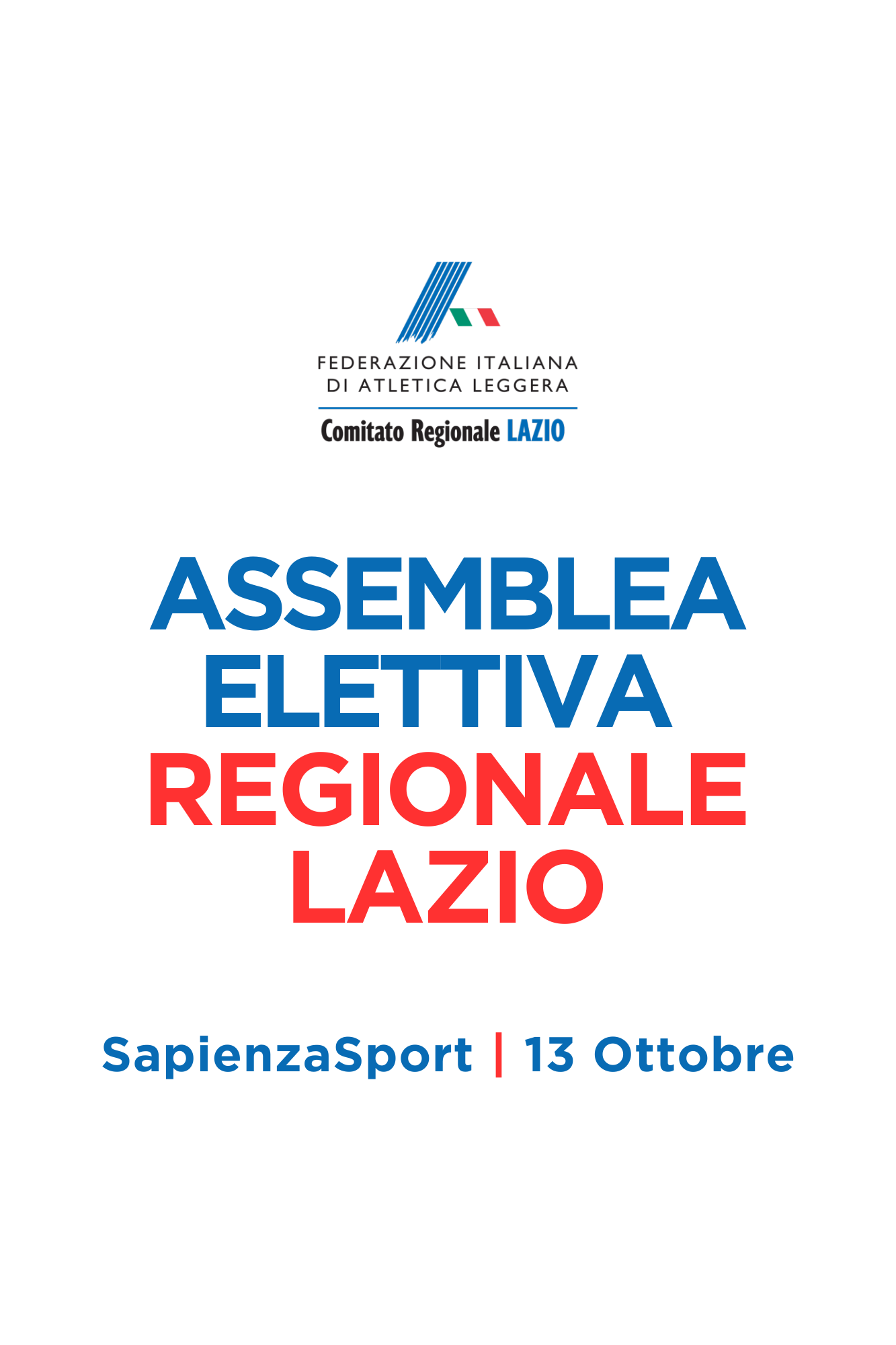 | 11 Ottobre 2024 Il 13 ottobre l'assemblea elettiva FIDAL Lazio L'atletica regionale sceglie per la presidenza e per il consiglio regionale. Assemblea a Sapienza Sport: prima convocazione alle 9 di domenica 13 ottobre, seconda convocazione alle 10.30 dello stesso giorno | |