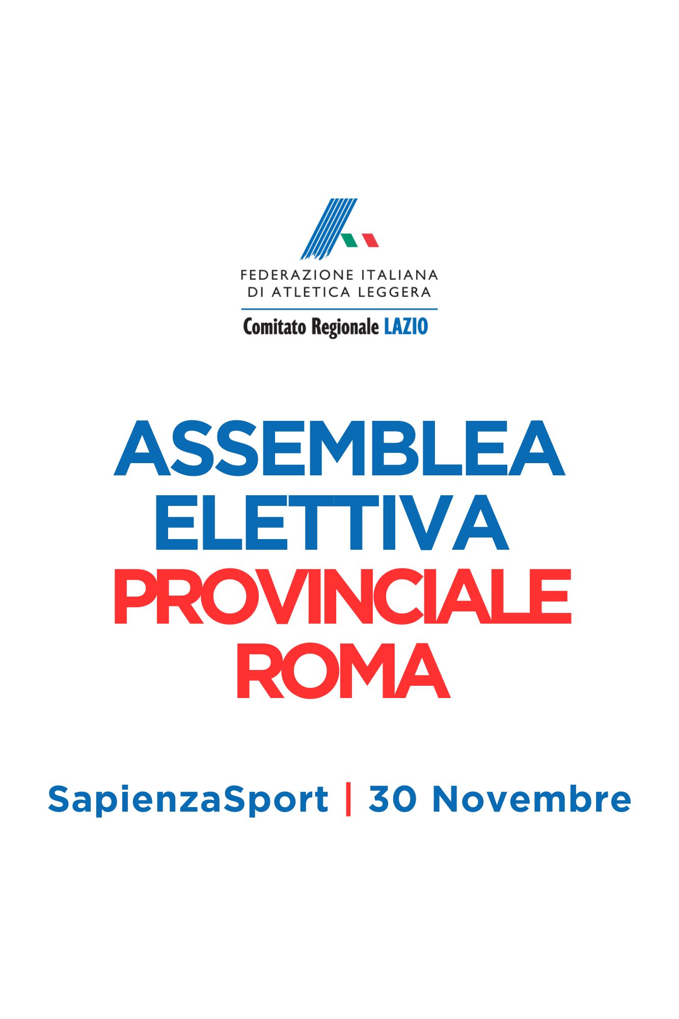 | 02 Ottobre 2024 FIDAL Roma: c'è l'assemblea elettiva Il 30 novembre si rinnova il presidente e il consiglio provinciale del Comitato FIDAL Roma. Qui tutti i dettagli e la documentazione per la candidatura e per il voto delle società. Elezioni a SapienzaSport, a Tor di Quinto | |