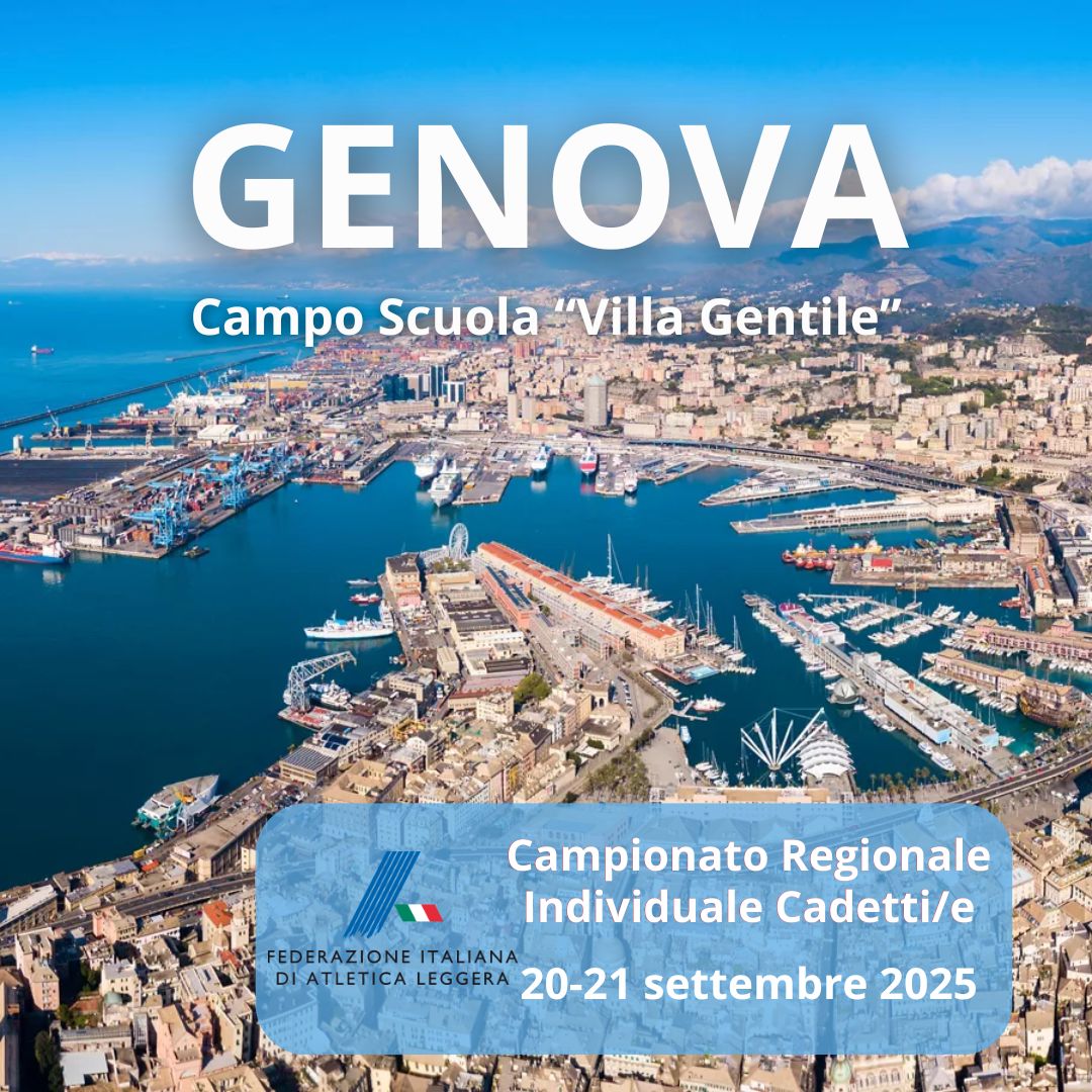 | 18 Settembre 2025 ORARIO AGGIORNATO: Campionati Ind. Cadetti/e Genova, 20-21 settembre 2025 | |
