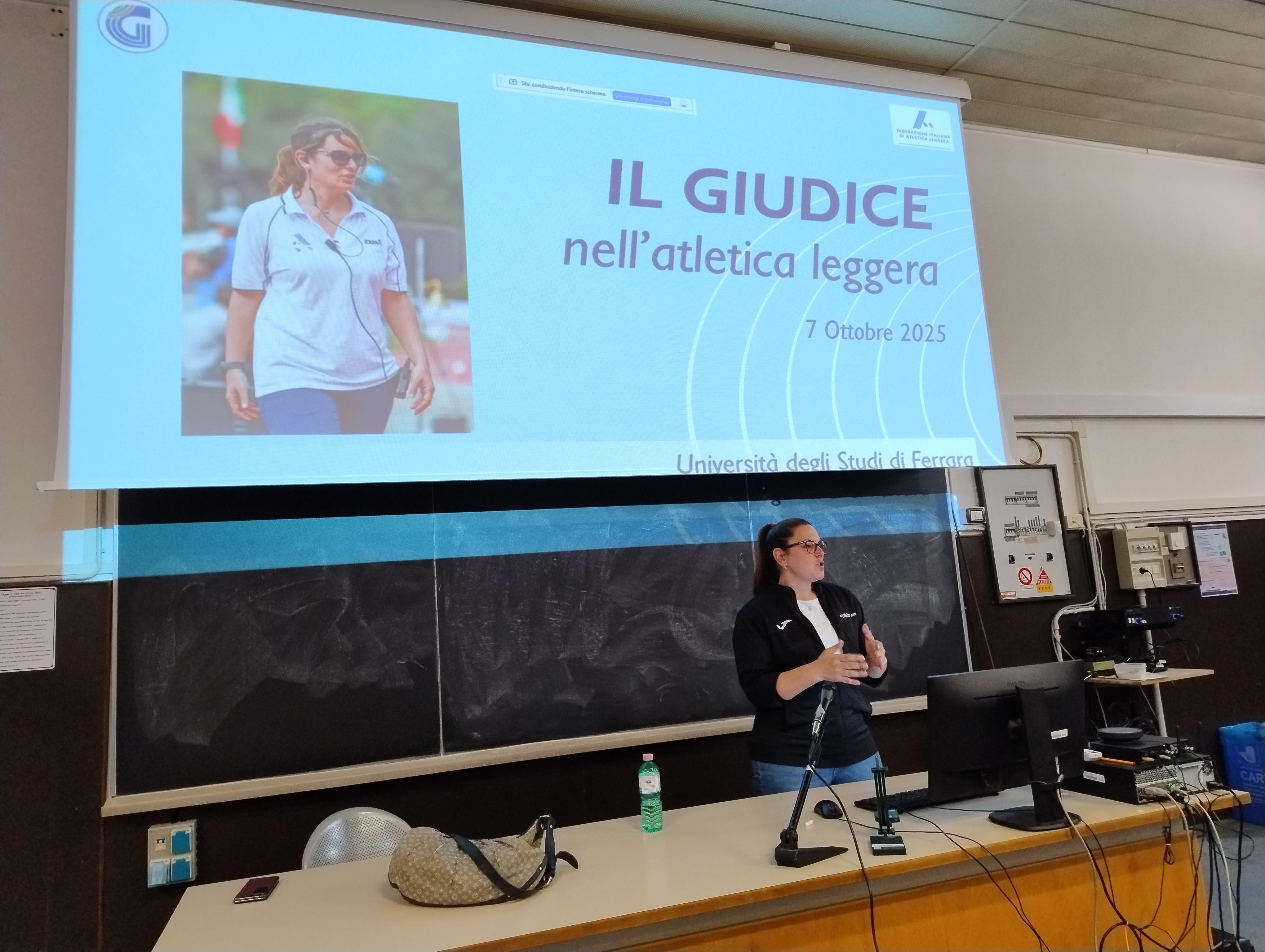 | 10 Ottobre 2025 Il ruolo del Giudice FIDAL presentato all'Università di Ferrara Il Gruppo Giudici di Gara della Emilia Romagna ha incontrato gli studenti di Scienze Motorie per illustrare la figura dei Giudici di Gara e promuovere il Gruppo in un'ottica di formazione e rinnovamento. | |