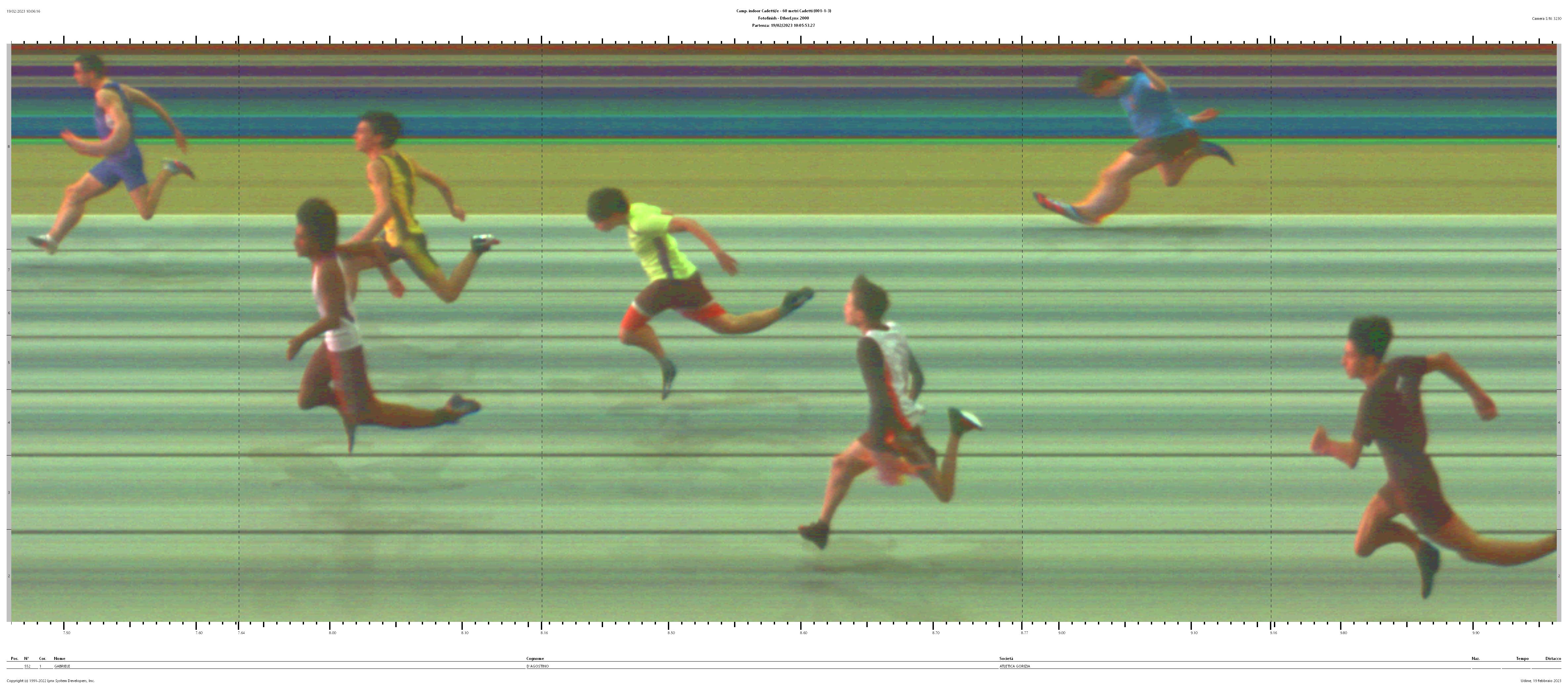 | 7 | 1 | 552 | D'AGOSTINO Gabriele | 2009 | CM | GO050 ATLETICA GORIZIA | 9.82 |