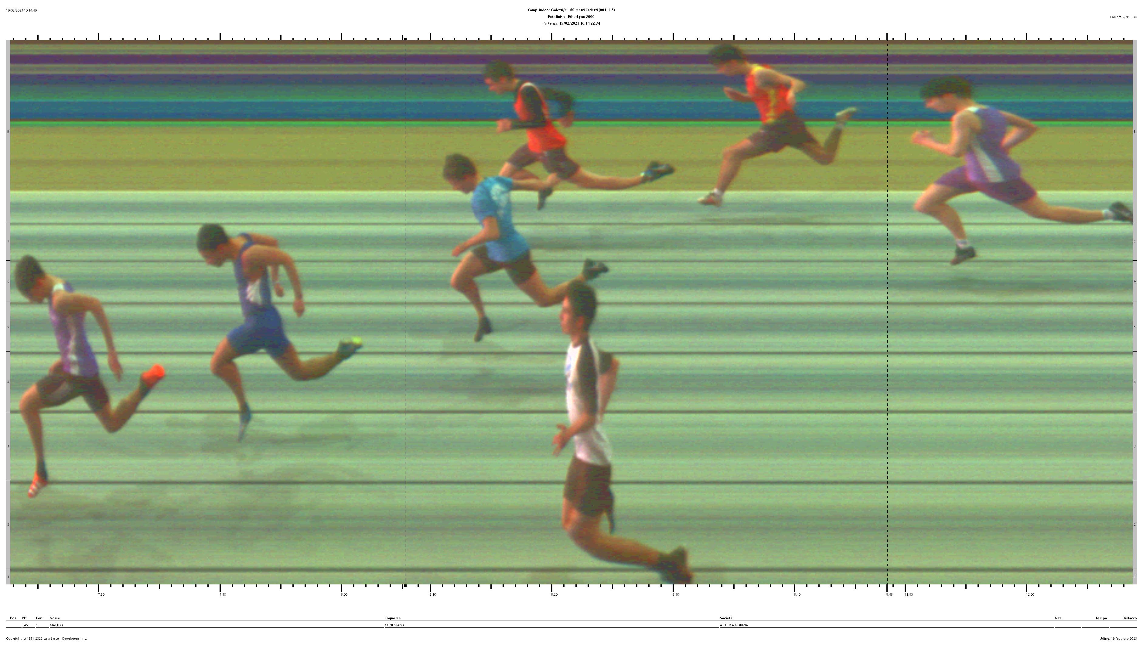 | 5 | 1 | 613 | MASUTTI Davide | 2008 | CM | UD018 LIBERTAS FRIUL PALMANOVA | 8.49 |