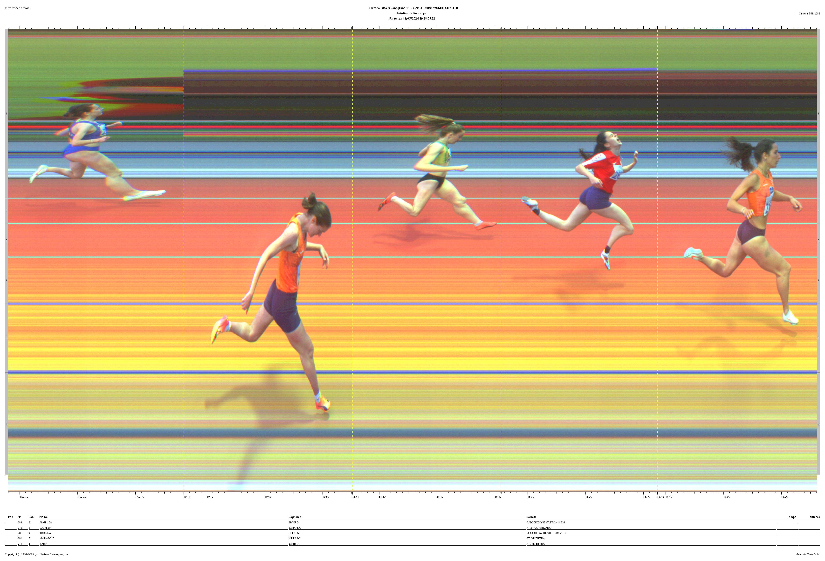 | 5 | 2 | 281 | SIVIERO Angelica | 2006 | U20 W | VI623 ASSOCIAZIONE ATLETICA N.E.VI. | 1:02.16 | 684 |