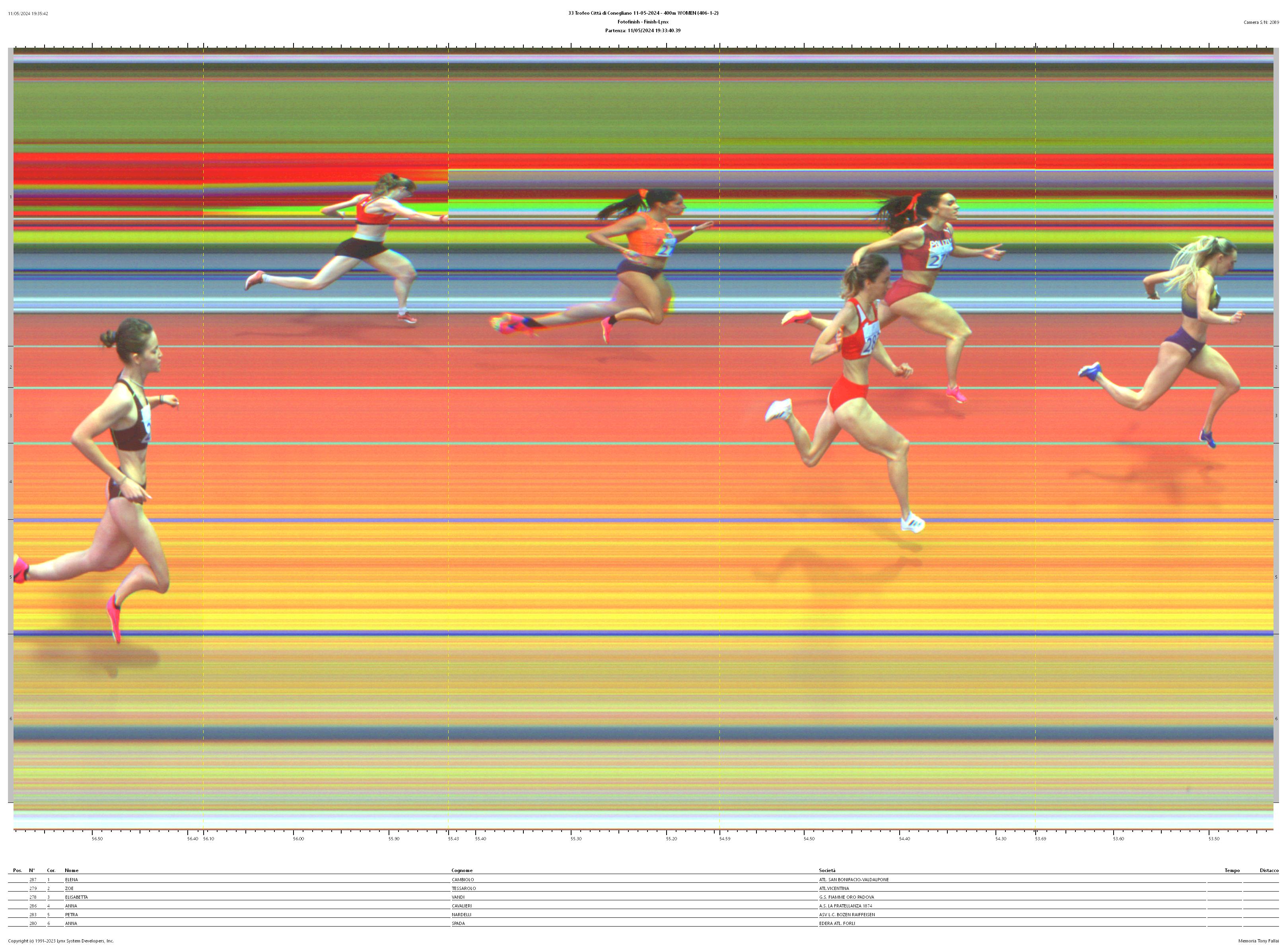 | 4 | 2 | 279 | TESSAROLO Zoe | 2003 | U23 W | VI626 ATL.VICENTINA | 55.20 | 946 |
